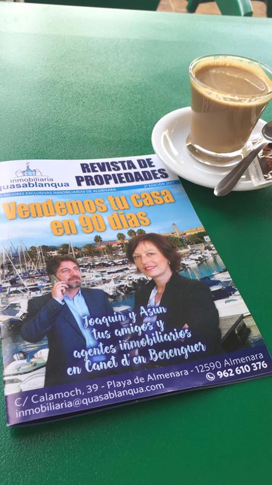 Quieres tomarte un café disfrutando de nuestra revista inmobiliaria..? Nos puedes encontrar en los mejores comercios de Canet, en breve en mi blog , os pasaré el contenido de la misma y os contaré los beneficios que tiene para los comercios, la población, los compradores, los vendedores e incluso para los profesionales inmobiliarios.